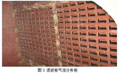 在改造方案中充分考慮了已有的條件,利用了已施工完成的設備基礎,在原電除塵器基礎上,保留了電除塵器殼體、支架、灰斗和平臺爬梯等,拆除陰陽極系統,在除塵器內部安裝濾袋系統、脈沖噴吹系統、設置合理的流場分布裝置。在設備選型時,盡量選用相同與已有設備的型號,便于后續的設備檢修和維護工作;好化地利用現有設備,降低改造成本。