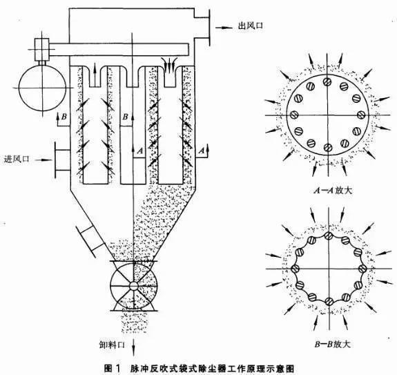通常,工業中含有粉塵的氣體是先通過進風道進入到脈沖布袋除塵器內,一些較大的塵粒則會掉到除塵器灰斗的好底部,而較小的粉塵則會跟著氣流的方向進入機器的中箱體與下箱體,這些塵粒會粘在除塵布袋的上面,過濾之后含塵的氣體會從上箱體一直進到凈氣調集管的排風道,好后排風機會把這些含塵的氣體送出。