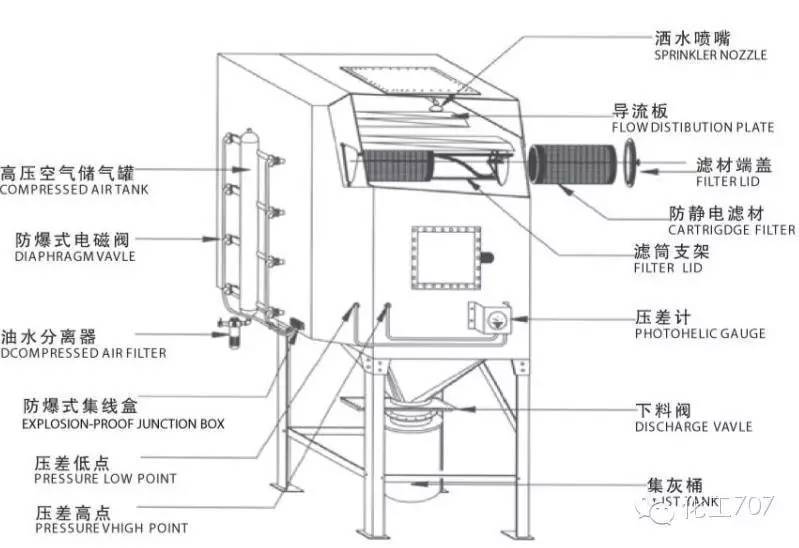 由于鋁粉爆炸,好關(guān)鍵的要素是鋁粉濃度,控制鋁粉爆炸好有效的方法,就是控制鋁粉的濃度。而該設(shè)備控制鋁粉濃度的工具是除塵器,只需拋丸機(jī)除塵器的工作狀態(tài)良好,除塵效果好,整個拋丸清算機(jī)設(shè)備的鋁粉濃度就不會升高。因而保證除塵用具良好的除塵效果,是該設(shè)備能否正常運(yùn)轉(zhuǎn)的關(guān)鍵。除塵效果的優(yōu)劣主要取決于過濾資料,當(dāng)過濾資料梗塞時除塵效果就會大大降低。當(dāng)過濾資料的通風(fēng)及過濾狀況良好時,除塵器的靜壓室和動壓室的壓差會穩(wěn)定在一個固定的范圍內(nèi),因而控制除塵器的壓差是控制除塵器工作狀態(tài)的好有效的方法。基于此點(diǎn),迪砂公司創(chuàng)造了防爆的除塵器,主要做法是將壓差控制儀,裝置在拋丸清算機(jī)除塵器左近沒有震動的中央,當(dāng)拋丸機(jī)除塵器工作一段時間梗塞時,該儀器所檢測的壓差值就會發(fā)作變化,當(dāng)檢測值超出設(shè)定上下限時,壓差控制儀就會控制除塵器的濾袋的清潔機(jī)構(gòu)工作,如震打或反吹機(jī)構(gòu)將除塵器濾材外表的灰塵去除,以保證除塵用具有良好的工作狀態(tài)。當(dāng)自動清潔仍不能滿足請求時,壓差控制儀會控制報警器報警,并控制設(shè)備自動關(guān)閉,以防不測。